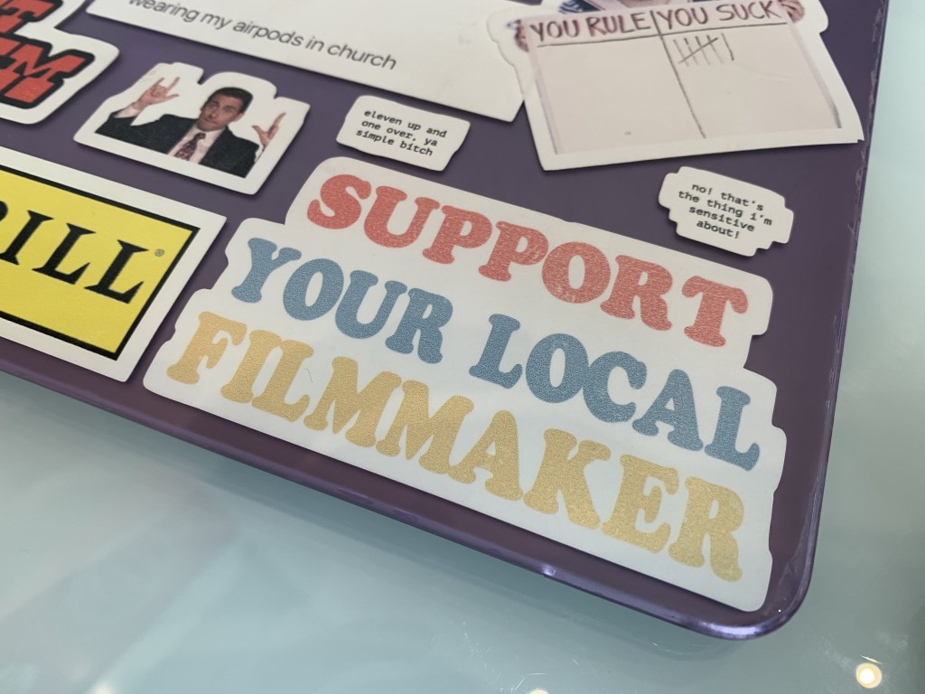 Malugen beams as she gives a tour of her laptop, pointing out a Kacey Musgraves sticker (one of her favorite musicians), a Trixie Mattel sticker (she loves “RuPaul’s Drag Race”) and one that reads “Support Your Local Filmmaker.”